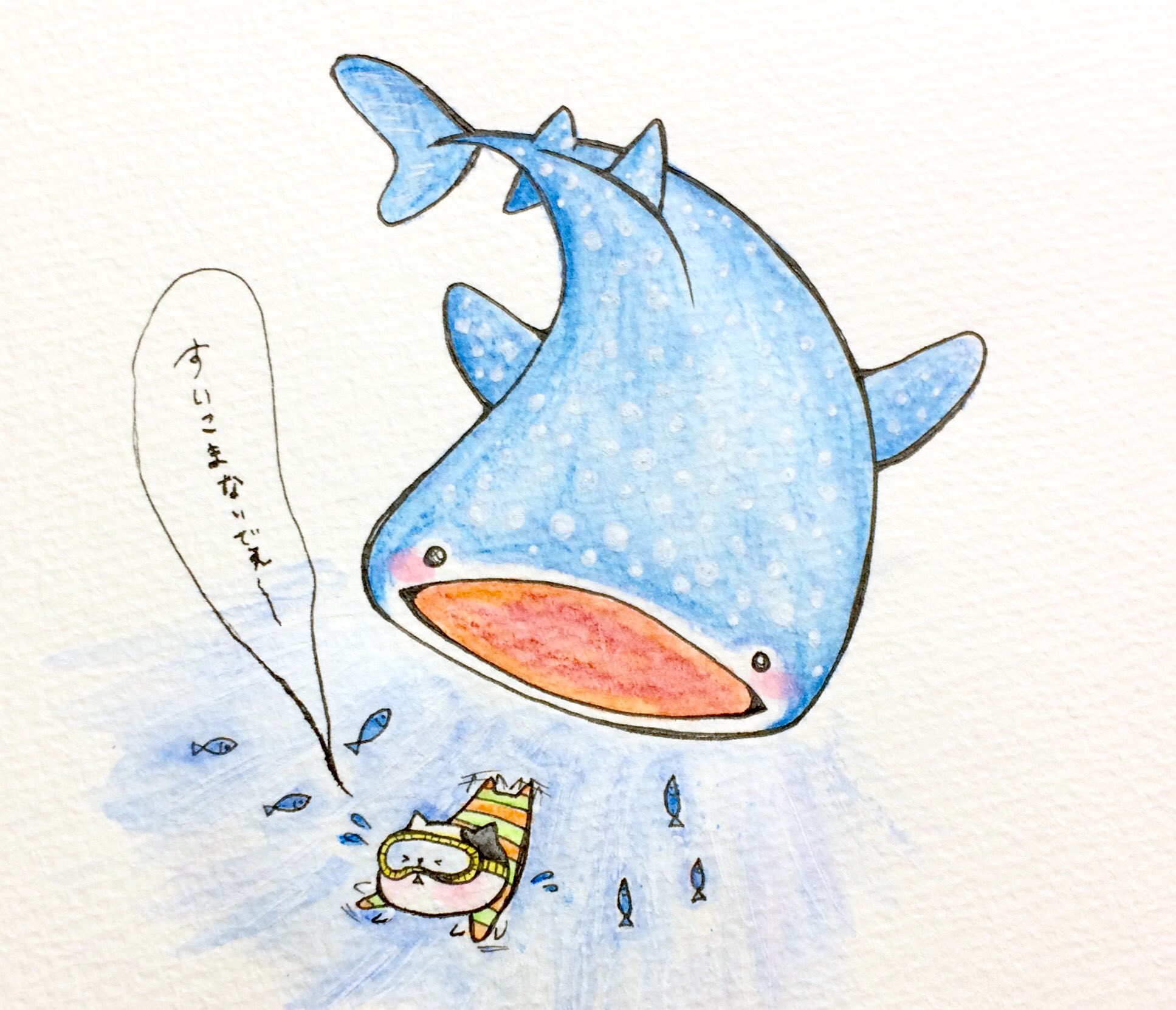 Twitter 上的 おこにゃん すいこまないでぇ ジンベイザメ ちゅらうみ水族館 すいこまないで 沖縄 猫 にゃんこ イラスト 可愛い 1日1絵 癒し 手描き 絵描きさんと繋がりたい イラスト好きな人と繋がりたい 絵描き人 Followme Cats T Co